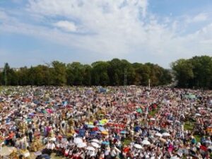20 osobowa delegacja z Brzózy, na czele której był burmistrz Huber Czubaj i dyrektor szkoły w Brzózie – Jarosław Janczak,